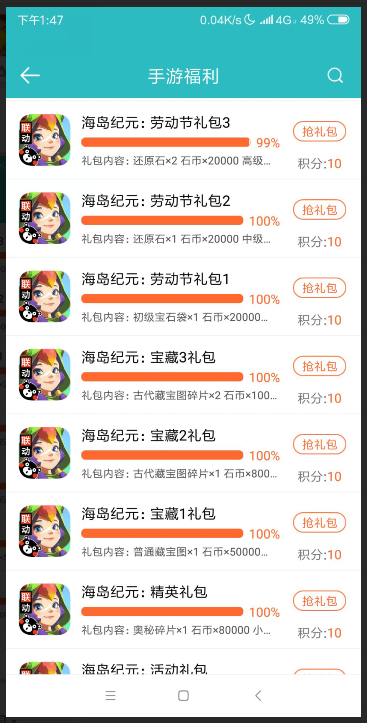 第二步;进入”福利“后既可以看到很多海岛纪元礼包,点击复制礼包兑换码